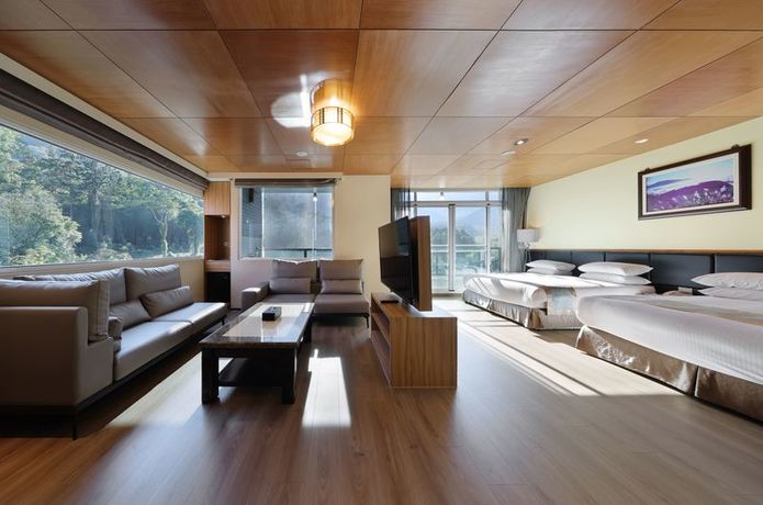 - 位於高樓層的豪華四人房,擁有15坪的寬敞空間, 遠眺青山視野遼闊,每房設有陽台檜木泡浴至於陽台上與大自然零距離,讓您邊泡澡邊吸收天地的日月精華。