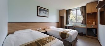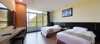 - 8坪的精緻客房,設有專屬陽台,高樓層山景客房,客房內採用高級木質地板,提供兩小床的舒適臥床,簡約中呈現雅致。