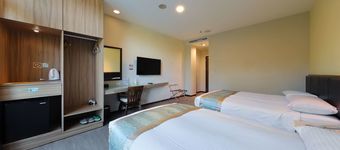 8坪的精緻客房,設有專屬陽台,客房內採用高級木質地板,提供兩小床的舒適臥床,簡約中呈現雅致。
